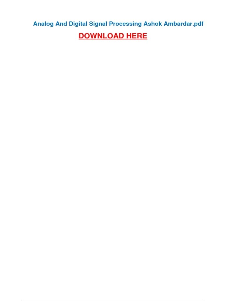 Analog And Digital Signal Processing 2nd Edition Solution Ashok Ambardar Pdf
