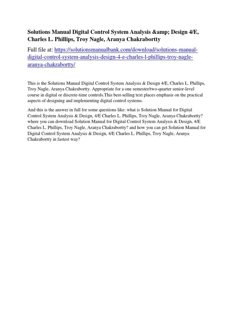 Instructor S Solutions Manual Digital Control System Analysis Design Global Edition 4 E